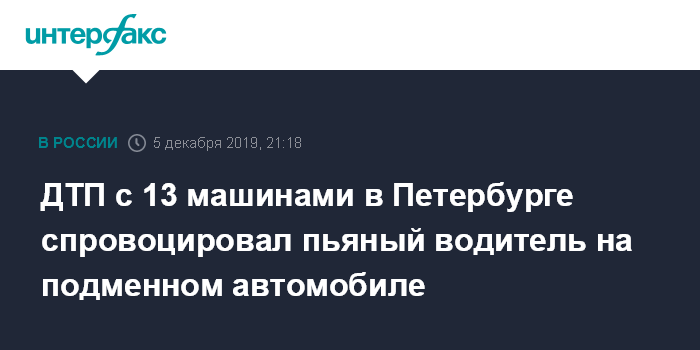 ДТП с 13 машинами в Петербурге спровоцировал пьяный водитель на подменном автомобиле