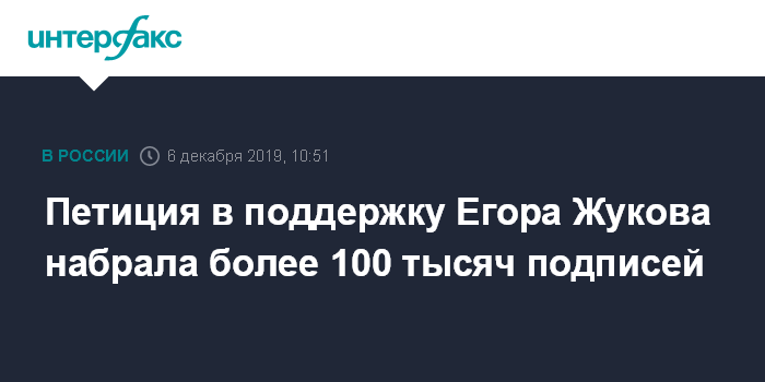 Москва. 6 декабря. INTERFAX.RU - Более 100 тысяч человек подписали петицию с требованием освободить студента Высшей школы экономики, блогера Егора Жукова, обвиняемого в призывах к экстремистской деятельности.