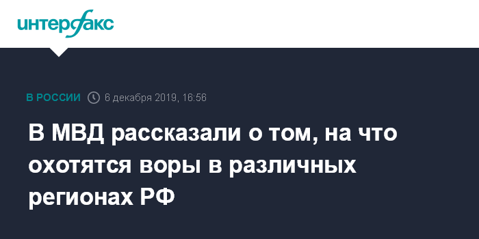 Москва. 6 декабря. INTERFAX.RU - В МВД РФ рассказали, чем стремятся завладеть воры в различных регионах России.