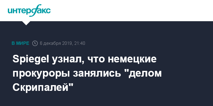Москва. 6 декабря. INTERFAX.RU - Генпрокуратура Германии начала свое расследование в отношении подозреваемых в деле об отравлении Сергея Скрипаля и его дочери, сообщает в пятницу журнал Spiegel.