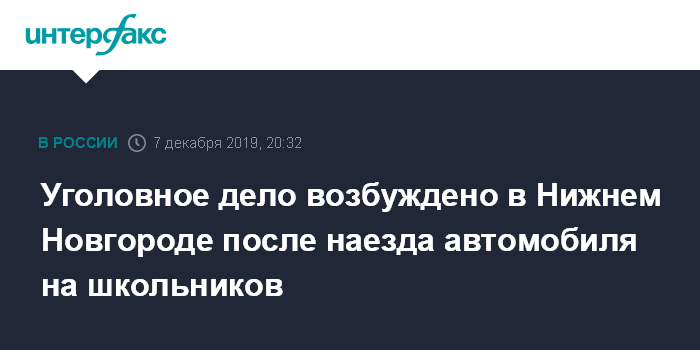 Москва. 7 декабря. INTERFAX.RU - Следственные органы в рамках уголовного дела будут выяснять обстоятельства крупного ДТП, в котором пострадали школьники и погиб педагог в центре Нижнего Новгорода.
