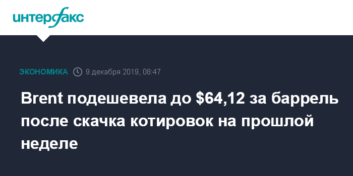 Brent подешевела до $64,12 за баррель после скачка котировок на прошлой неделе