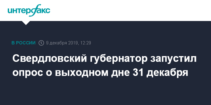 Свердловский губернатор запустил опрос о выходном дне 31 декабря