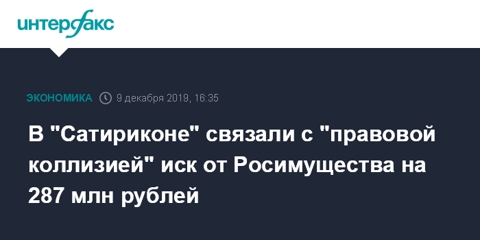 В "Сатириконе" связали с "правовой коллизией" иск от Росимущества на 287 млн рублей
