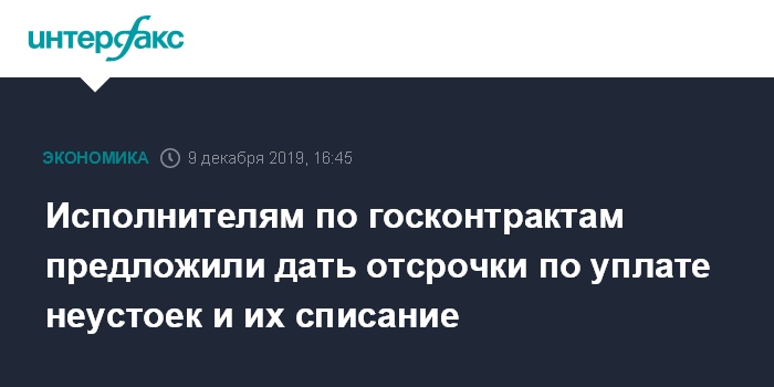 Исполнителям по госконтрактам предложили дать отсрочки по уплате неустоек и их списание
