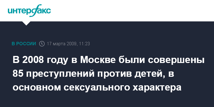 В 2008 году в Москве были совершены 85 преступлений против детей, в основном сексуального характера