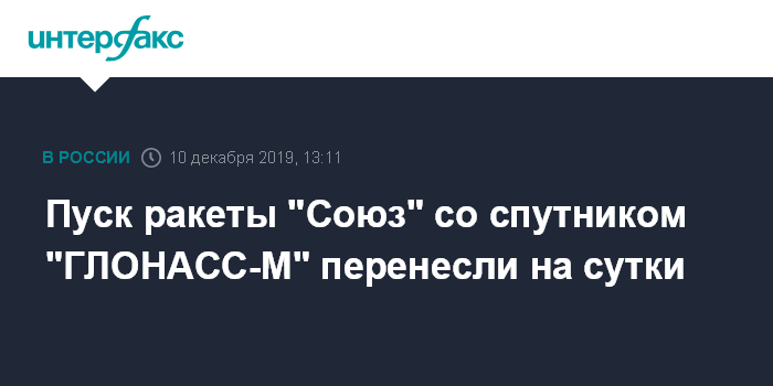 "При каждом пуске есть основная и резервная дата пуска. Как правило, это следующие сутки. И в данном случае пуск перенесен на следующие сутки по техническим причинам", - сообщил "Интерфаксу" источник, знакомый с ситуацией.