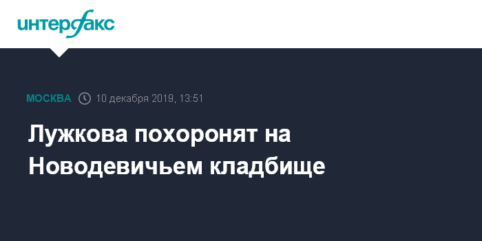 Москва. 10 декабря. INTERFAX.RU - Бывшего мэра Москвы Юрия Лужкова похоронят на Новодевичьем кладбище, сообщила пресс-секретарь мэра столицы Гульнара Пенькова. Об этом попросили его родственники. Дату похорон определит семья, добавила она.