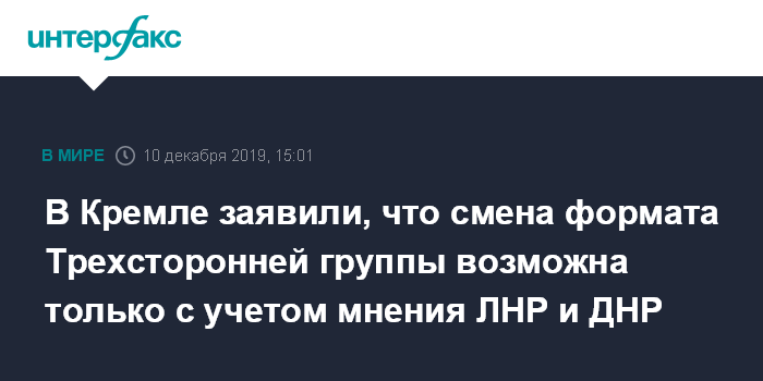 В Кремле заявили, что смена формата Трехсторонней группы возможна только с учетом мнения ЛНР и ДНР