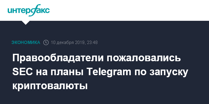 Правообладатели пожаловались SEC на планы Telegram по запуску криптовалюты