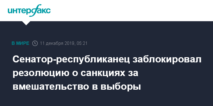 Сенатор-республиканец заблокировал резолюцию о санкциях за вмешательство в выборы