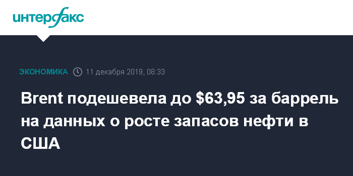 Накануне цены на нефть повысились на возросшем оптимизме в отношении торговых переговоров США и Китая. СМИ сообщили, что Пекин рассчитывает на отсрочку Вашингтоном введения пошлин на товары китайского экспорта, запланированного на 15 декабря. Экономический советник Белого дома Ларри Кадлоу, однако, не подтвердил эту информацию, заявив, что возможность вступления в силу пошлин "остается на повестке дня".
