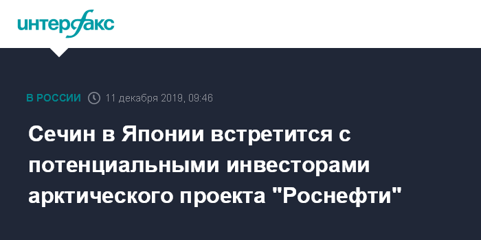 По данным Nikkei, у Сечина запланированы встречи с представителями Агентства по природным ресурсам и энергетике, государственной компании JOGMEC, а также Mitsubishi, Itochu, Marubeni, Mitsui и Inpex.