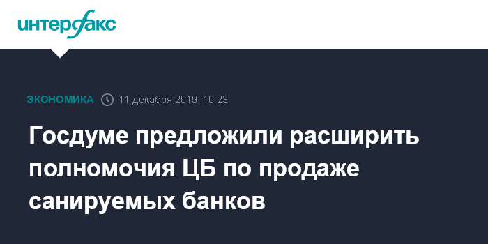 В конце октября премьер-министр Дмитрий Медведев поручил Минфину и Минэкономразвития при участии ЦБ до 1 июля 2020 года внести законопроект, упрощающий схему продажи санируемых кредитных организаций. Он хотел, чтобы ЦБ получил право не только полной, но и частичной продажи акций санированных банков в разных формах: путем проведения конкурса (с предъявлением к инвесторам дополнительных требований), прямой продажи одному инвестору (без проведения торгов или в случае признания торгов несостоявшимися), а также предложения акций широкому кругу инвесторов путем публичного размещения на бирже, говорилось в списке поручений, опубликованном на сайте правительства.