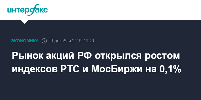 Рынок акций РФ открылся ростом индексов РТС и МосБиржи на 0,1%