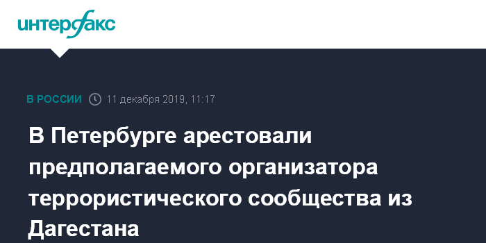 Москва. 11 декабря. INTERFAX.RU - Полицейские в Петербурге задержали уроженца Дагестана, обвиняемого в организации террористического сообщества, сообщил "Интерфаксу" информированный источник в среду.