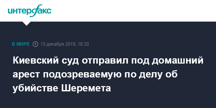 Москва. 13 декабря. INTERFAX.RU - Печерский суд Киева отправил под домашний арест до 8 февраля медсестру Яну Дугарь, которая проходит по делу об убийстве журналиста Павла Шеремета.