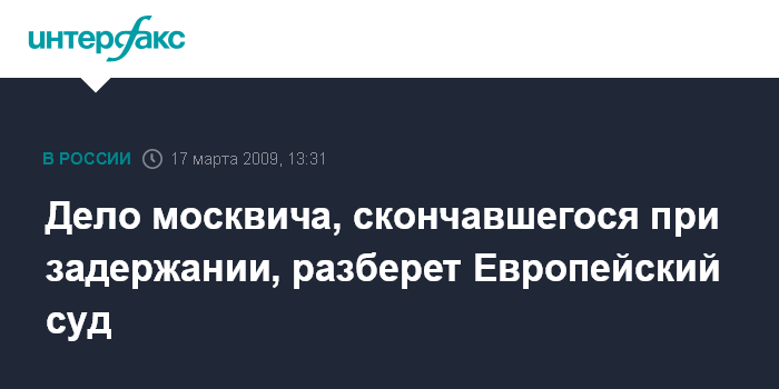 Москва. 17 марта. INTERFAX.RU - Европейский суд по правам человека рассмотрит в приоритетном порядке дело москвича, погибшего, как предполагается, в результате милицейской операции, сообщили в фонде "Общественный вердикт".