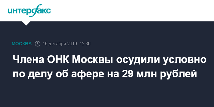 Члена ОНК Москвы осудили условно по делу об афере на 29 млн рублей