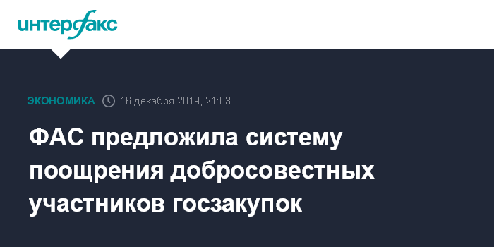 ФАС предложила систему поощрения добросовестных участников госзакупок