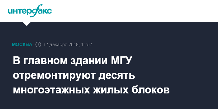 В главном здании МГУ отремонтируют десять многоэтажных жилых блоков