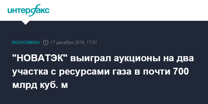 "НОВАТЭК" выиграл аукционы на два участка с ресурсами газа в почти 700 млрд куб. м