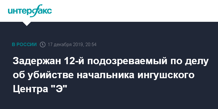 Задержан 12-й подозреваемый по делу об убийстве начальника ингушского Центра "Э"