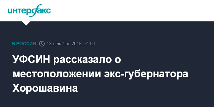 УФСИН рассказало о местоположении экс-губернатора Хорошавина