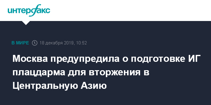 Москва предупредила о подготовке ИГ плацдарма для вторжения в Центральную Азию