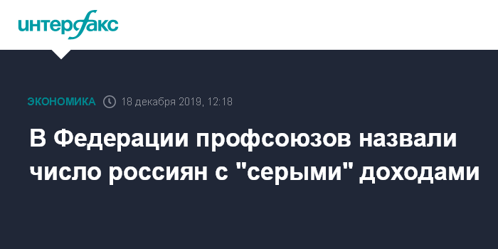 Москва. 18 декабря. INTERFAX.RU - По данным Федерации независимых профсоюзов России (ФНПР), практически треть трудоспособных сограждан в той или иной мере имеет отношение к "теневому рынку".