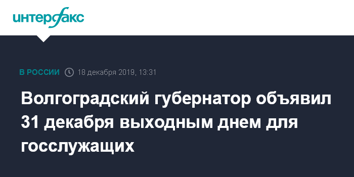 Волгоградский губернатор объявил 31 декабря выходным днем для госслужащих