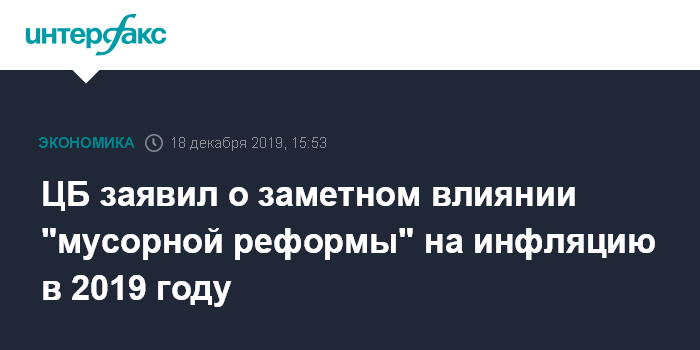 ЦБ заявил о заметном влиянии "мусорной реформы" на инфляцию в 2019 году