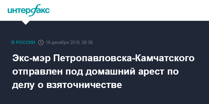 Экс-мэр Петропавловска-Камчатского отправлен под домашний арест по делу о взяточничестве