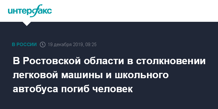 В Ростовской области в столкновении легковой машины и школьного автобуса погиб человек