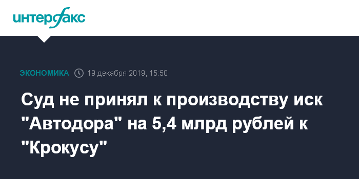 Суд не принял к производству иск "Автодора" на 5,4 млрд рублей к "Крокусу"