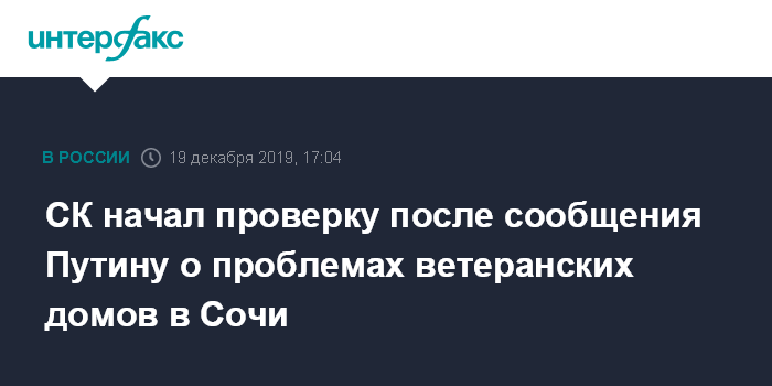 СК начал проверку после сообщения Путину о проблемах ветеранских домов в Сочи