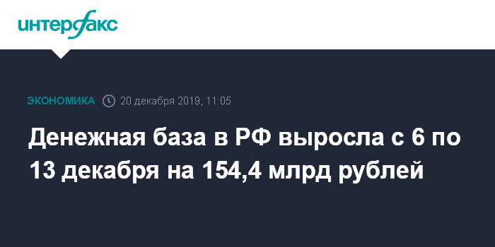 Денежная база в РФ выросла с 6 по 13 декабря на 154,4 млрд рублей