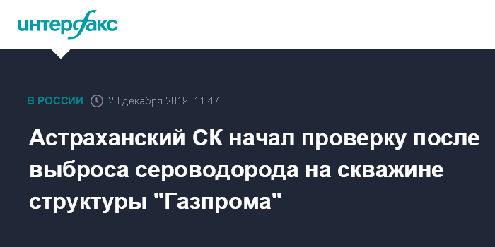 Астраханский СК начал проверку после выброса сероводорода на скважине структуры "Газпрома"
