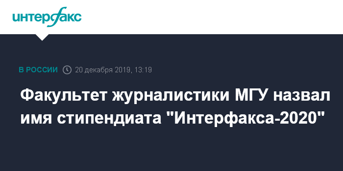 Факультет журналистики МГУ назвал имя стипендиата "Интерфакса-2020"
