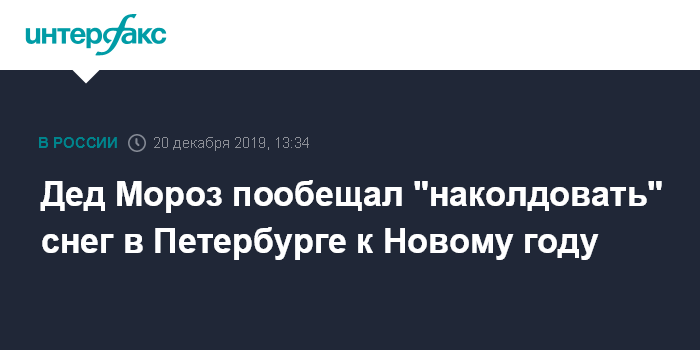 Москва. 20 декабря. INTERFAX.RU - Всероссийский Дед Мороз пообещал приложить усилия, чтобы Новый год в Петербурге был снежным.