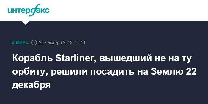 Корабль Starliner, вышедший не на ту орбиту, решили посадить на Землю 22 декабря