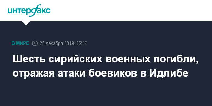 Шесть сирийских военных погибли, отражая атаки боевиков в Идлибе