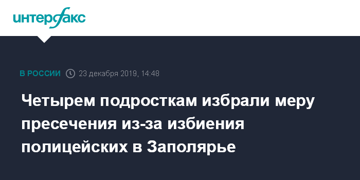 Москва. 23 декабря. INTERFAX.RU - Четырем подросткам из Апатитов (Мурманская область) избрана мера пресечения в рамках расследования уголовного дела о нападении на полицейских, сообщили "Интерфаксу" в пресс-службе регионального СКР в понедельник.