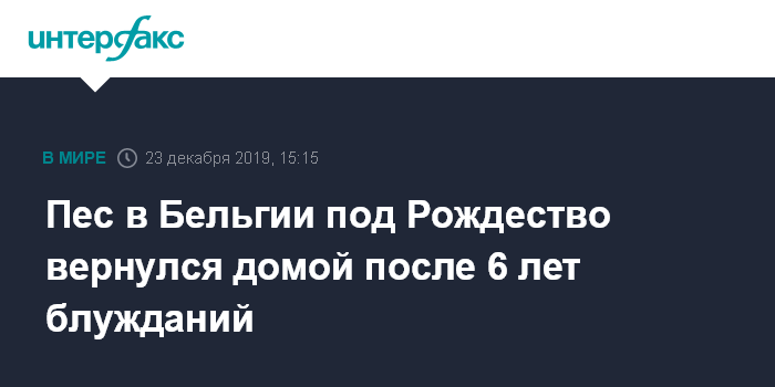 Москва. 23 декабря. INTERFAX.RU - В Бельгии собака в канун западного Рождества вернулась домой спустя шесть лет после того, как сбежала, сообщает в понедельник бельгийский телеканал RTBF.