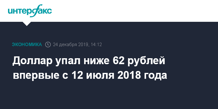 Доллар упал ниже 62 рублей впервые с 12 июля 2018 года