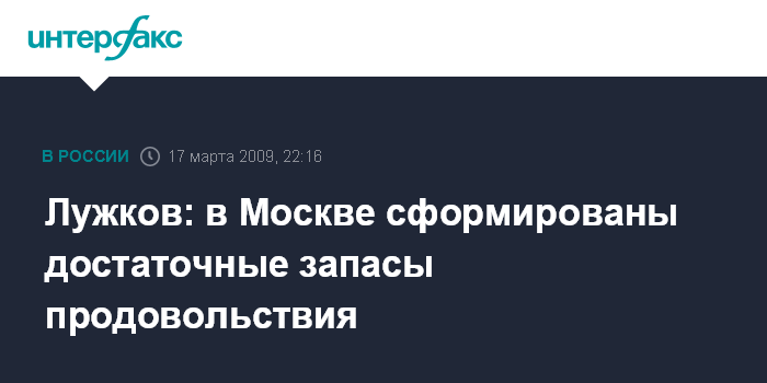 Лужков: в Москве сформированы достаточные запасы продовольствия