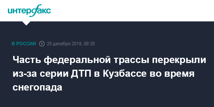 Москва. 25 декабря. INTERFAX.RU - Два ДТП с участием девяти автомобилей в Топкинском районе Кузбасса стали причиной перекрытия участка федеральной трассы "Сибирь", сообщили "Интерфаксу" в среду в пресс-службе главного управления МВД по региону.