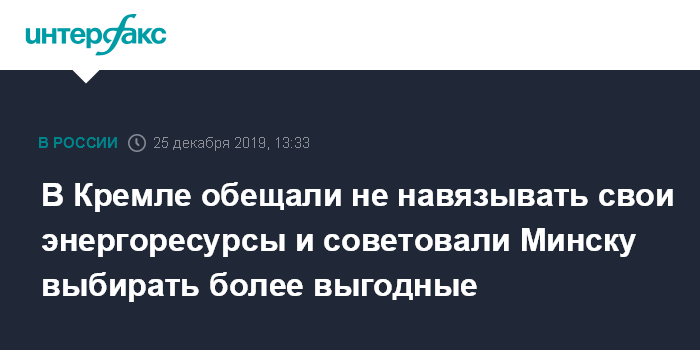 В Кремле обещали не навязывать свои энергоресурсы и советовали Минску выбирать более выгодные