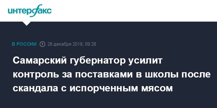 Москва. 26 декабря. INTERFAX.RU - Губернатор Самарской области Дмитрий Азаров поручил усилить контроль за поставщиками и качеством продуктов, которые поступают в школы и детские сады. Администрация региона создала рабочую группу для расследования попытки поставить испорченное мясо в такие организации, сообщили в пресс-службе областного правительства.