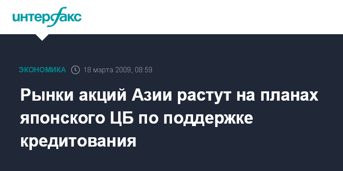 Москва. 18 марта. INTERFAX.RU - Финансовые компании возглавляют рост на рынках акций Азии в среду четвертую сессию подряд после того, как Банк Японии заявил об увеличении объемов покупки государственных облигаций у банков страны, чтобы поддержать кредитование, сообщает агентство Bloomberg.